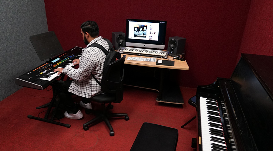 Our Keyboard Program also provides training in advanced capabilities such as sampling, drum programming, production, digital recording, and arranging, all while offering certified Apple Logic training.