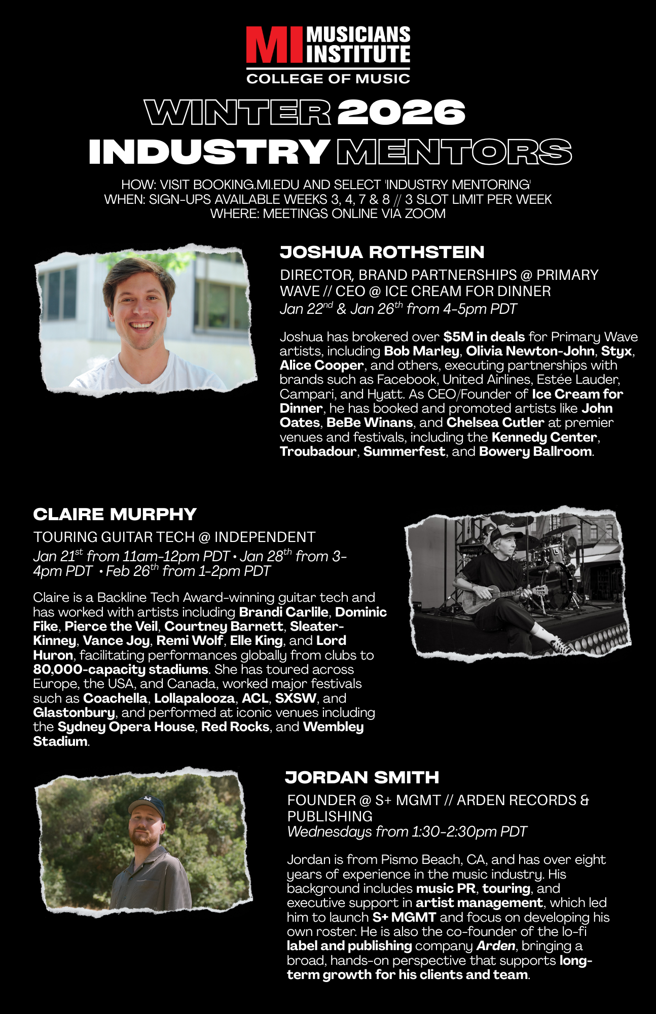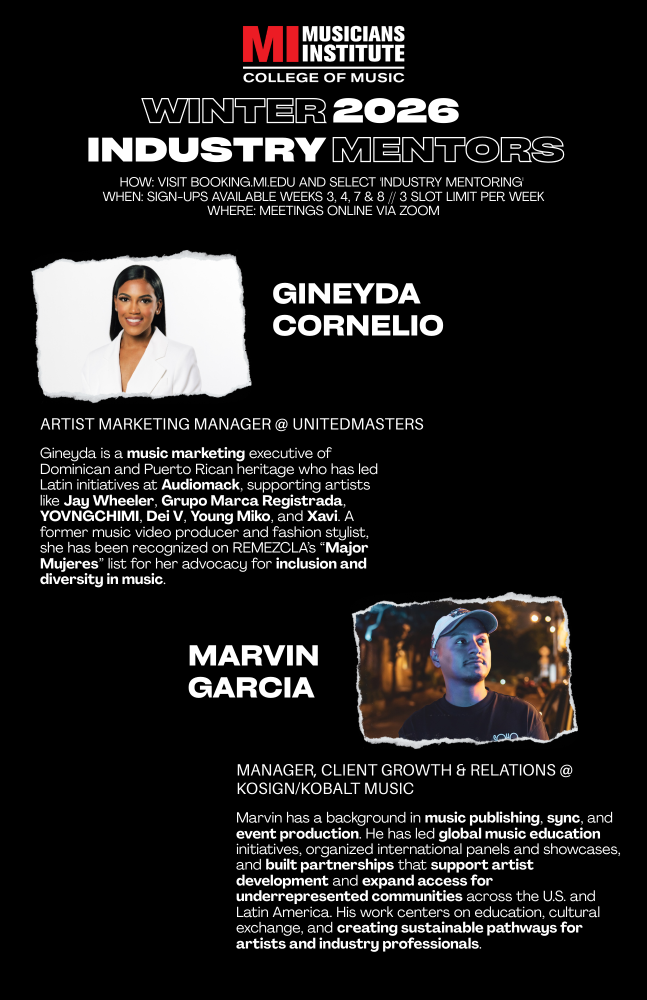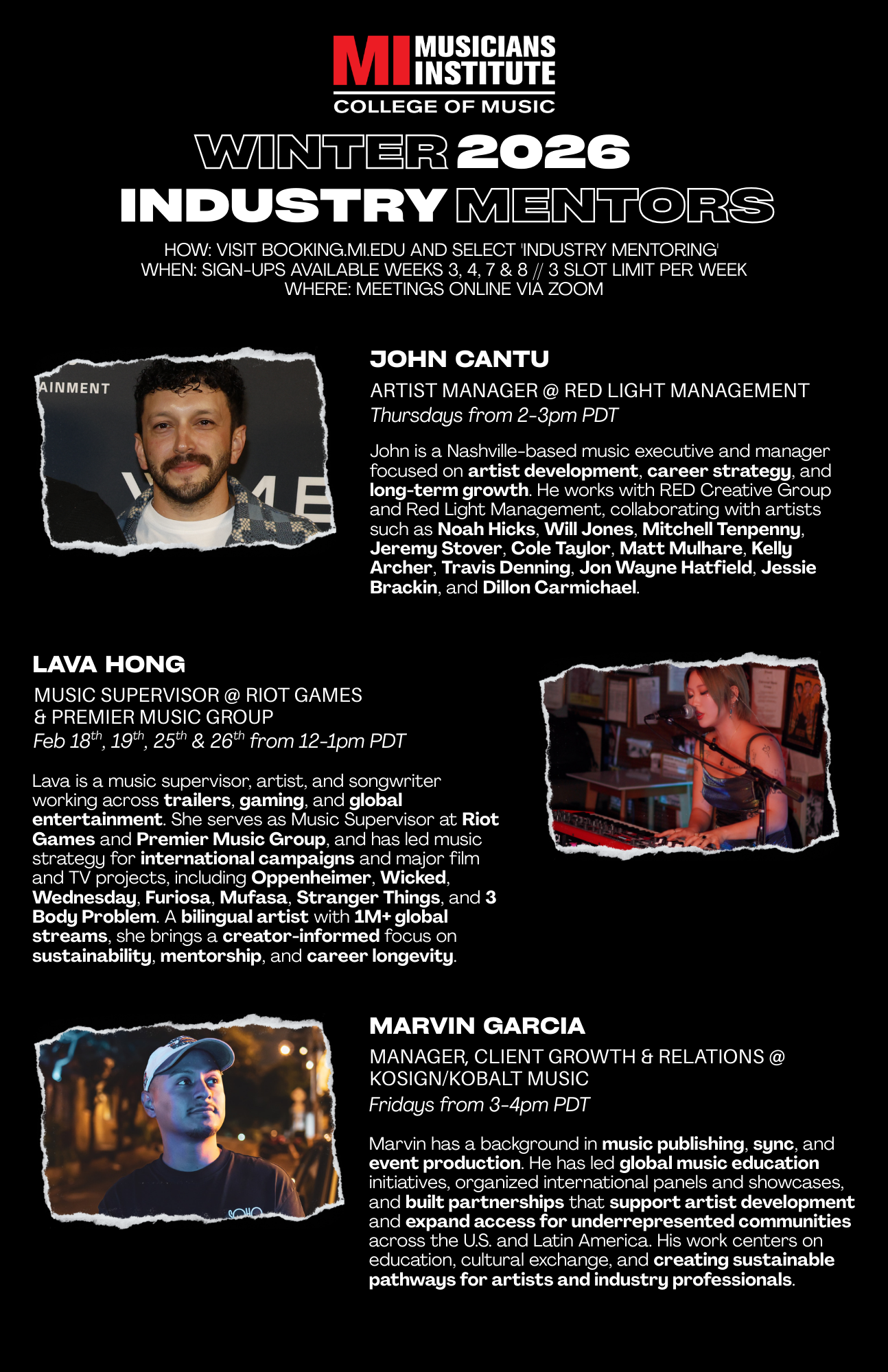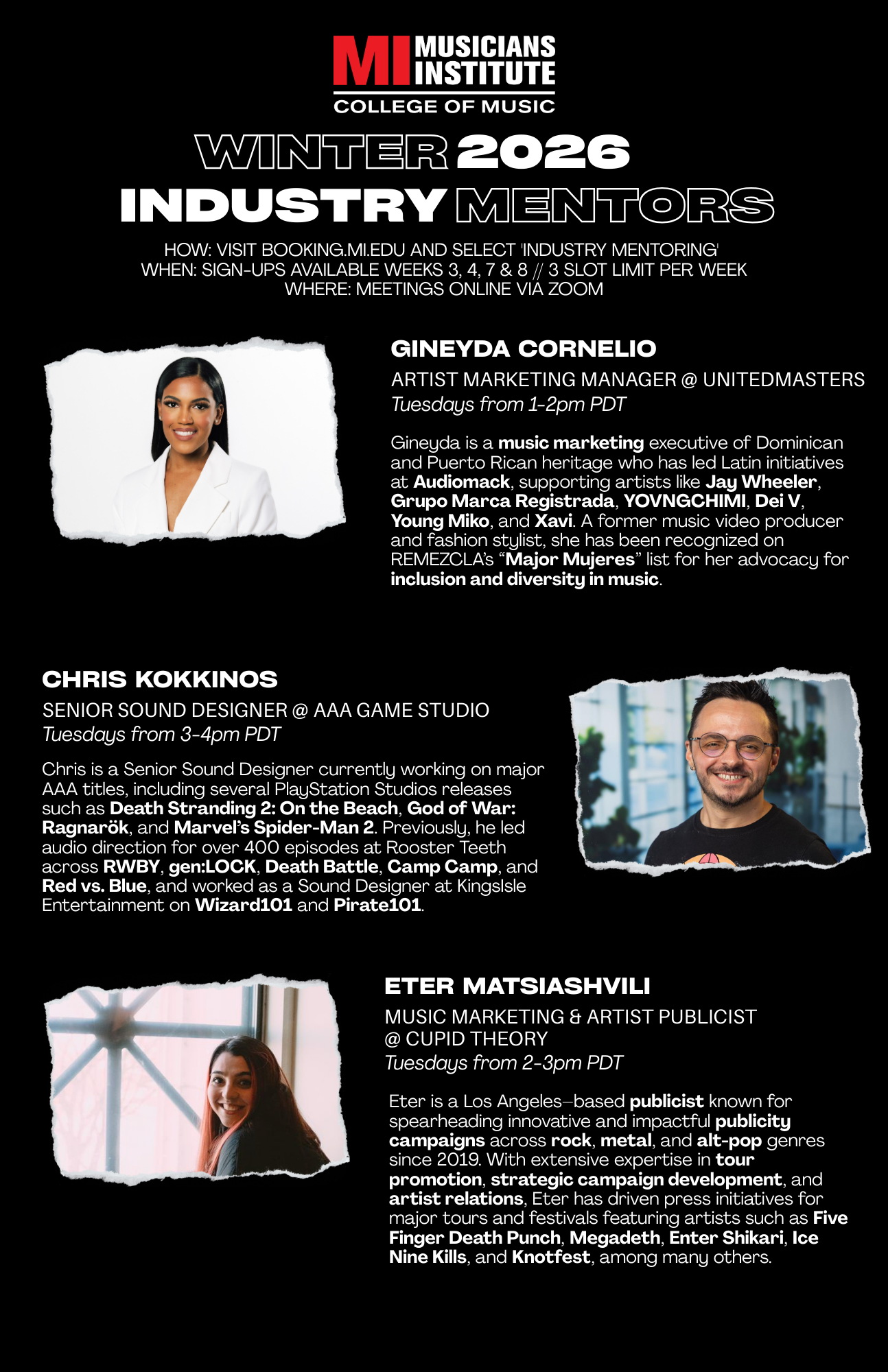 Musicians Institute Industry Mentors – Winter 2026